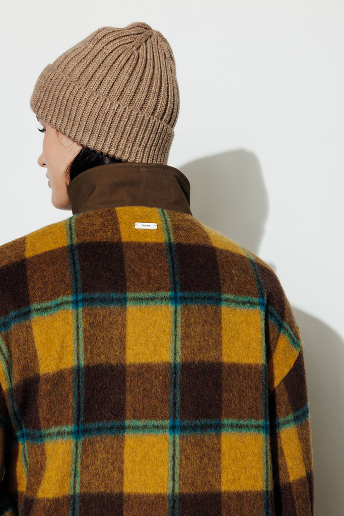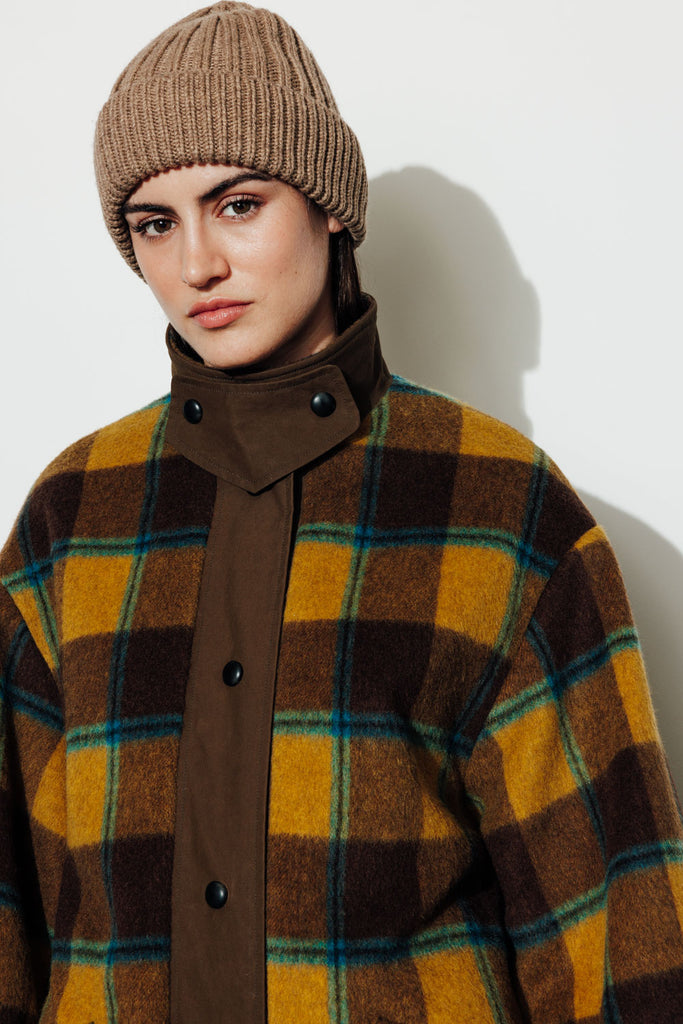 High collar with contrasting press stud fastening